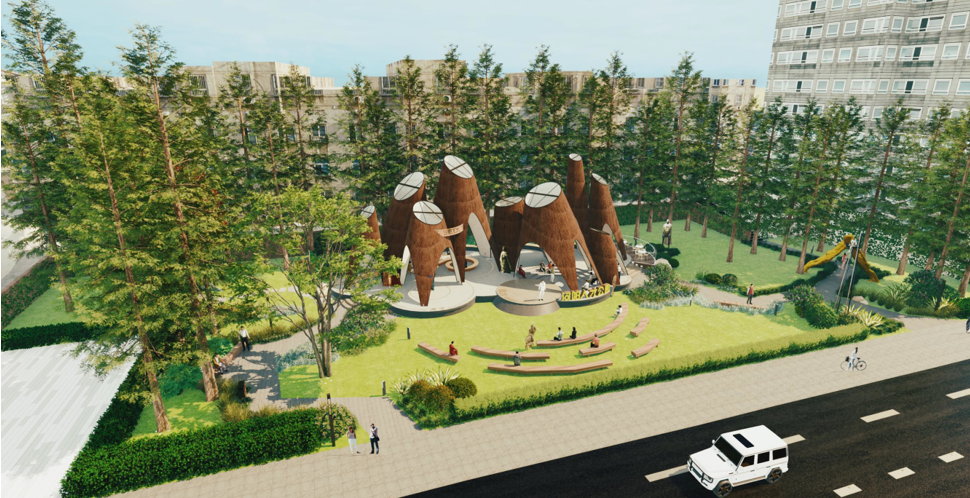 汉阳知音人才公园建设面积约2700平方米,项目紧邻汉阳大道,左侧为七里庙地铁站C出口,右侧为汉阳疾控中心。市政临街面长度80米。项目引用:冶钢历史,仿其形;筑巢引凤,立其意;山水文化,借其势;环保材料,覆其表等大量人才概念主题,立志将公园打造成其本身即为雕塑,在雕塑内引入功能,即可形成艺术化的多功能活动长廊,创造运营场景,打造永久性景观,通过艺术长廊,形成爆点,提升当地公共空间品质。